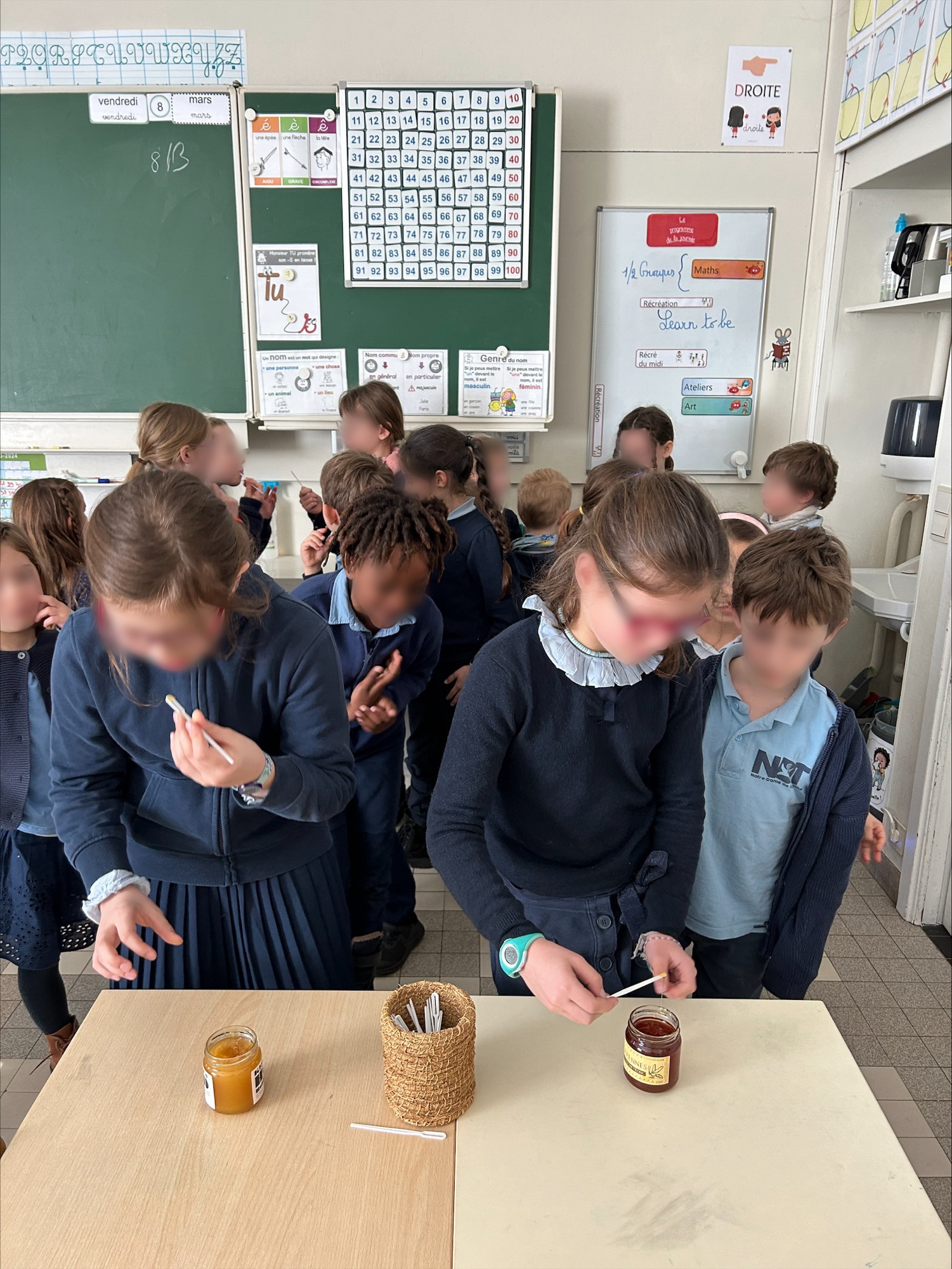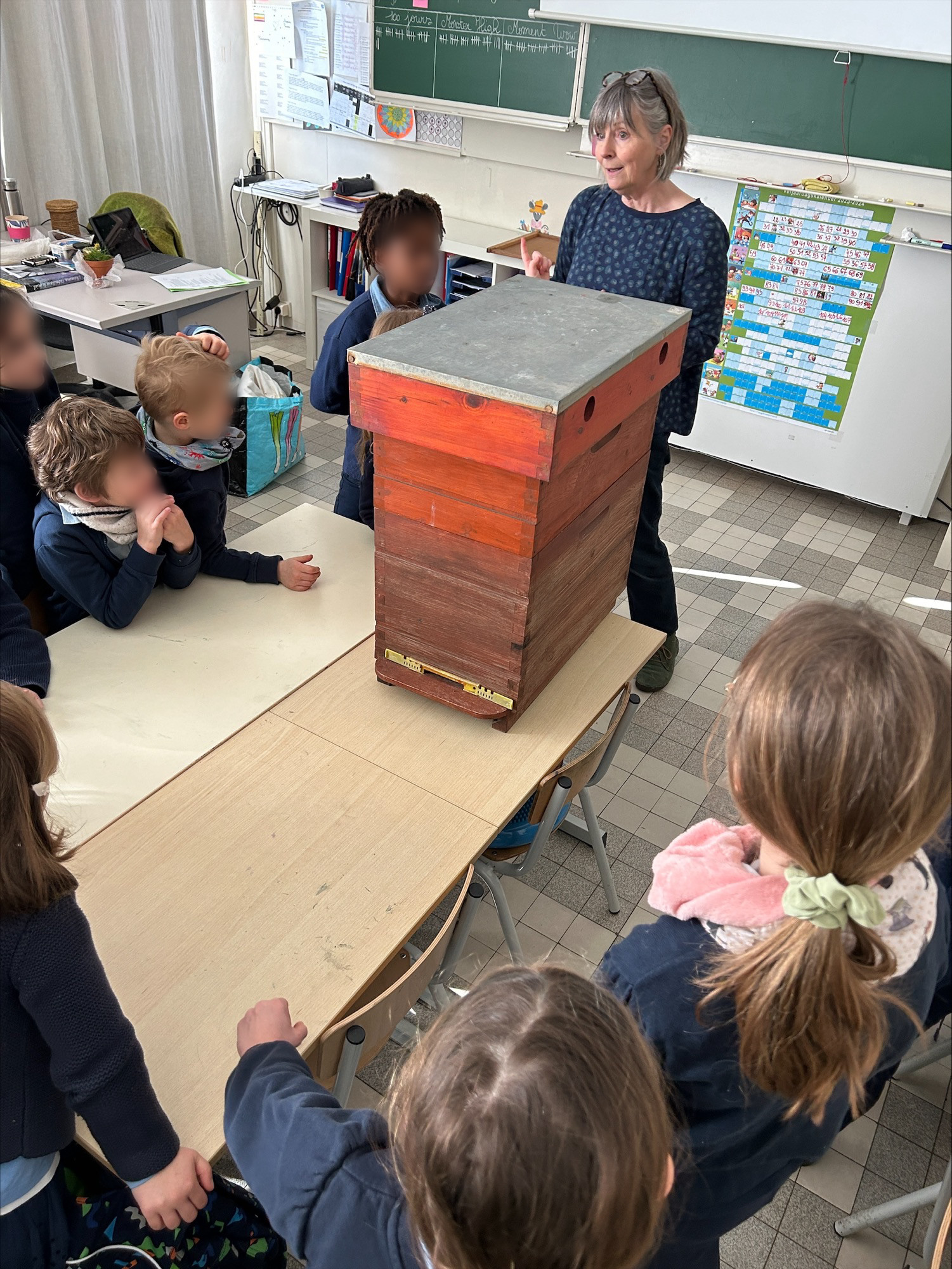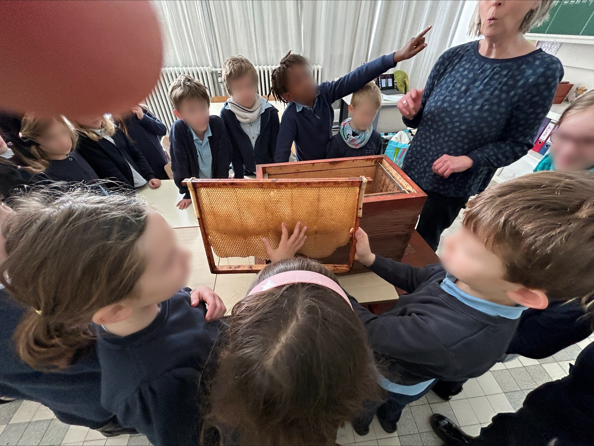 Quel plaisir de pouvoir y répondre sur place, matériel apicole à l’appui, entourée des enfants, intéressés et captivés.
