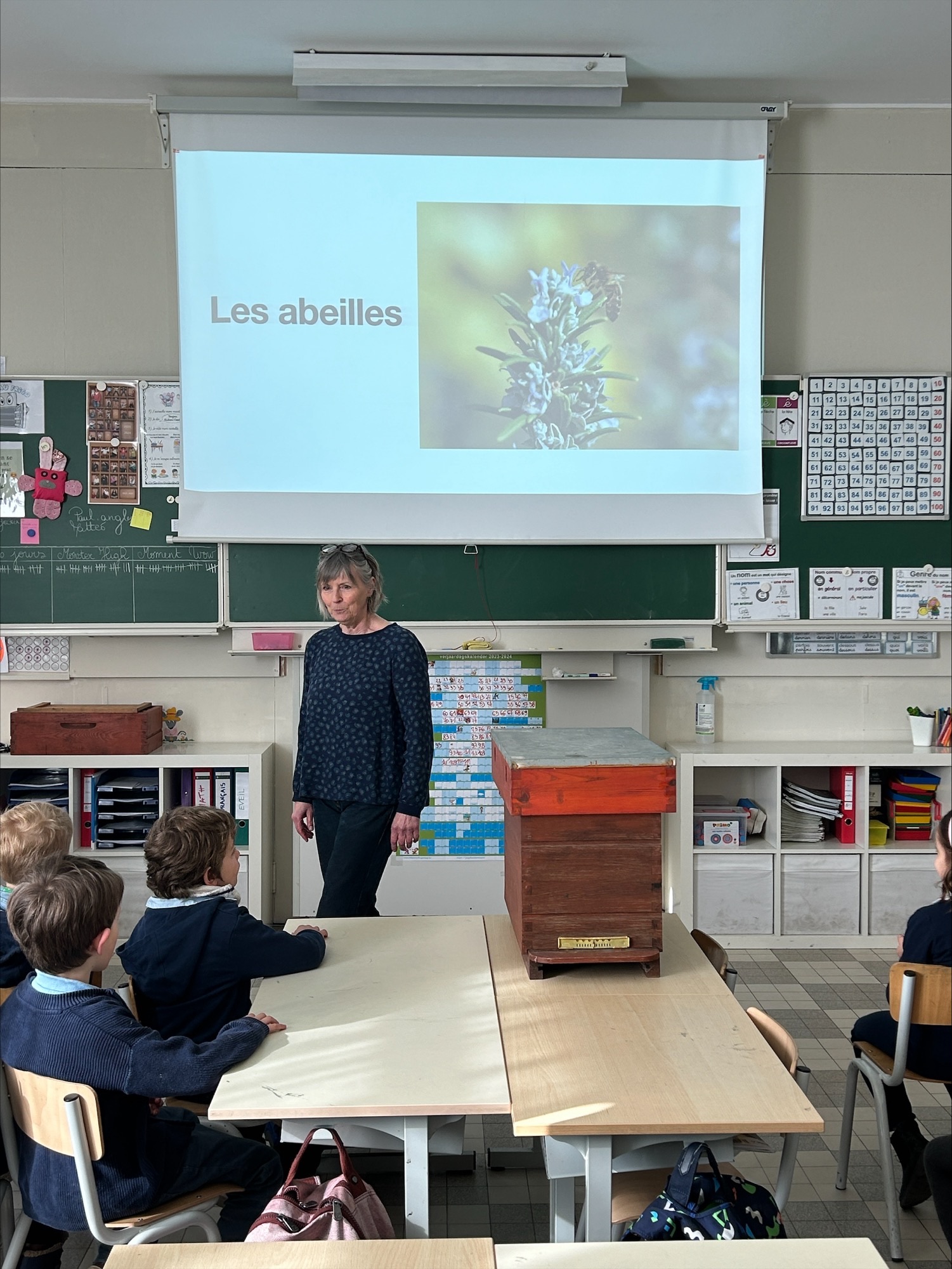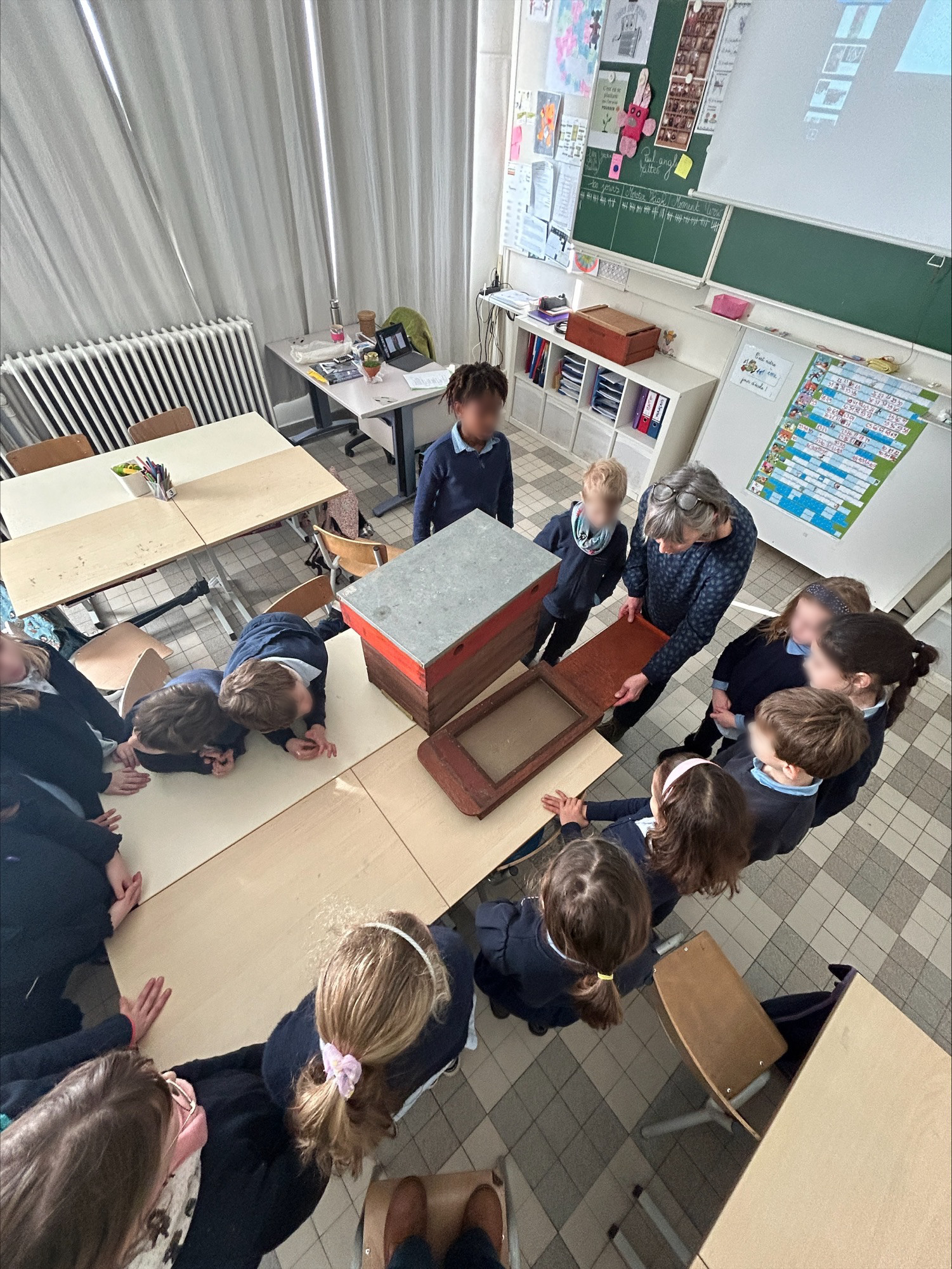 Vendredi, j’ai eu le plaisir de présenter le monde des abeilles et de l’apiculture aux élèves de l’école Notre-Dame de la Trinité à Wezembeek-Oppem.